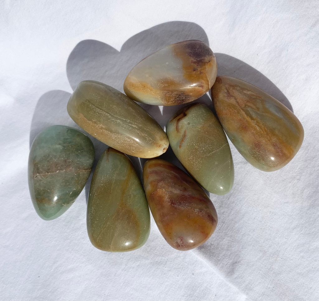 These palm stones are not as polished as a tumbled stone so bear in mind they still have a natural feel to them.