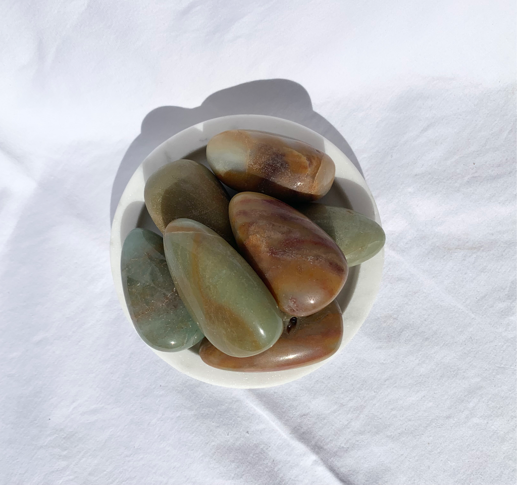 We will intuitively choose an Agate palm stone as each crystal is unique - just like you. The palm stones pictured are an indication of the pieces we have in stock and all carry the energy you are seeking.