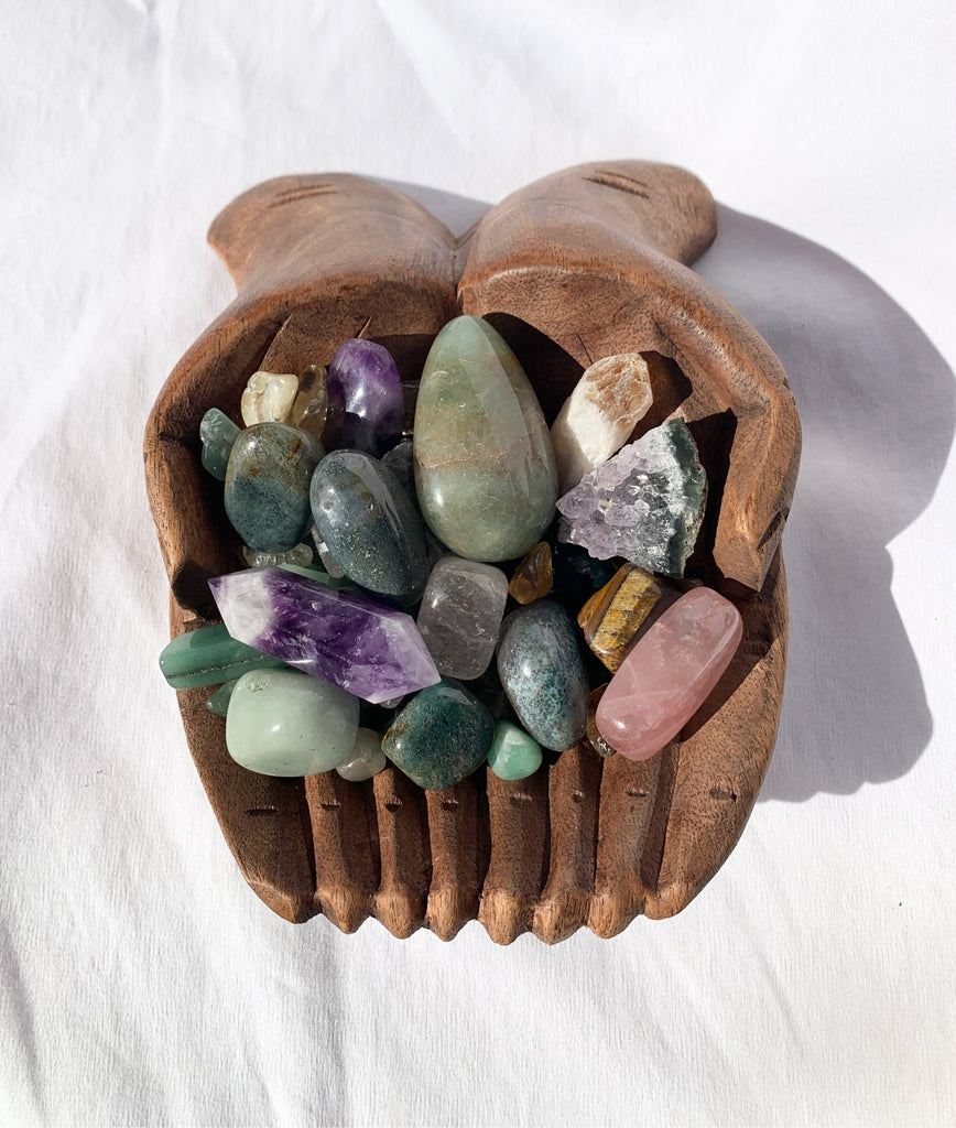 These stunning cupped hands tumble bowls are the ultimate tumble display piece for your collection. Available in two sizes Large and Medium, either one is going to bring joy and some serious tumble aesthetics to your table.