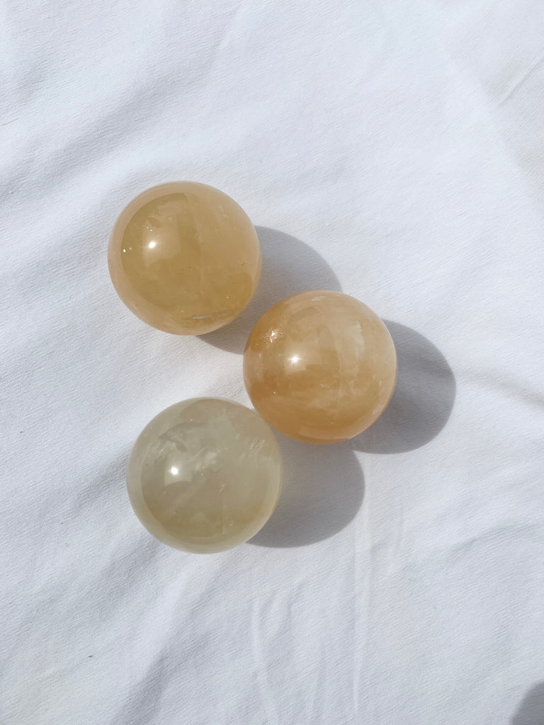 We will intuitively select a Honey Calcite sphere as each crystal is unique - just like you. The Honey Calcite sphere's pictured are an indication of the pieces we have in stock and all carry the energy you are seeking.