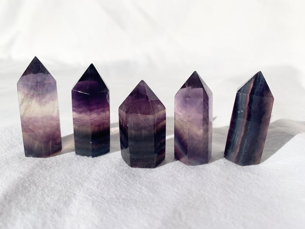 We will intuitively choose your Fluorite point as each crystal is unique - just like you. The items pictured are an indication of the pieces we have in stock and all carry the energy you are seeking.