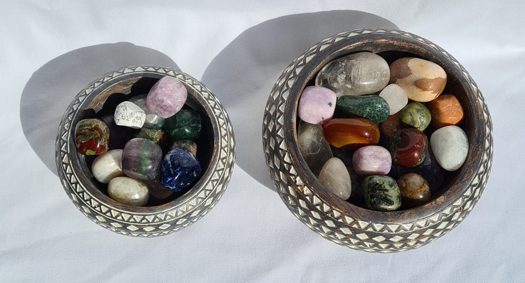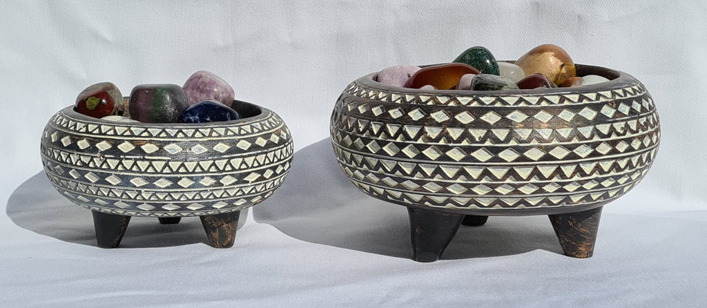 Earthy tribal addition to your crystal collection. These resin bowls will add depth and warmth to your decor whilst lifting your crystals aesthetics.